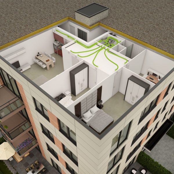Pe măsură ce clădirile devin mai bine izolate și etanșe, este necesară ventilația pentru a crea și a susține un mediu sănătos și o calitate ridicată a aerului interior. Cu toate acestea, o distribuție de aer prost proiectată sau instalată, sistemul va irosi energie prin pierderi inutile de presiune și / sau scurgeri de aer deoarece unitatea de ventilație va trebui să funcționeze în afara parametrilor nominali.